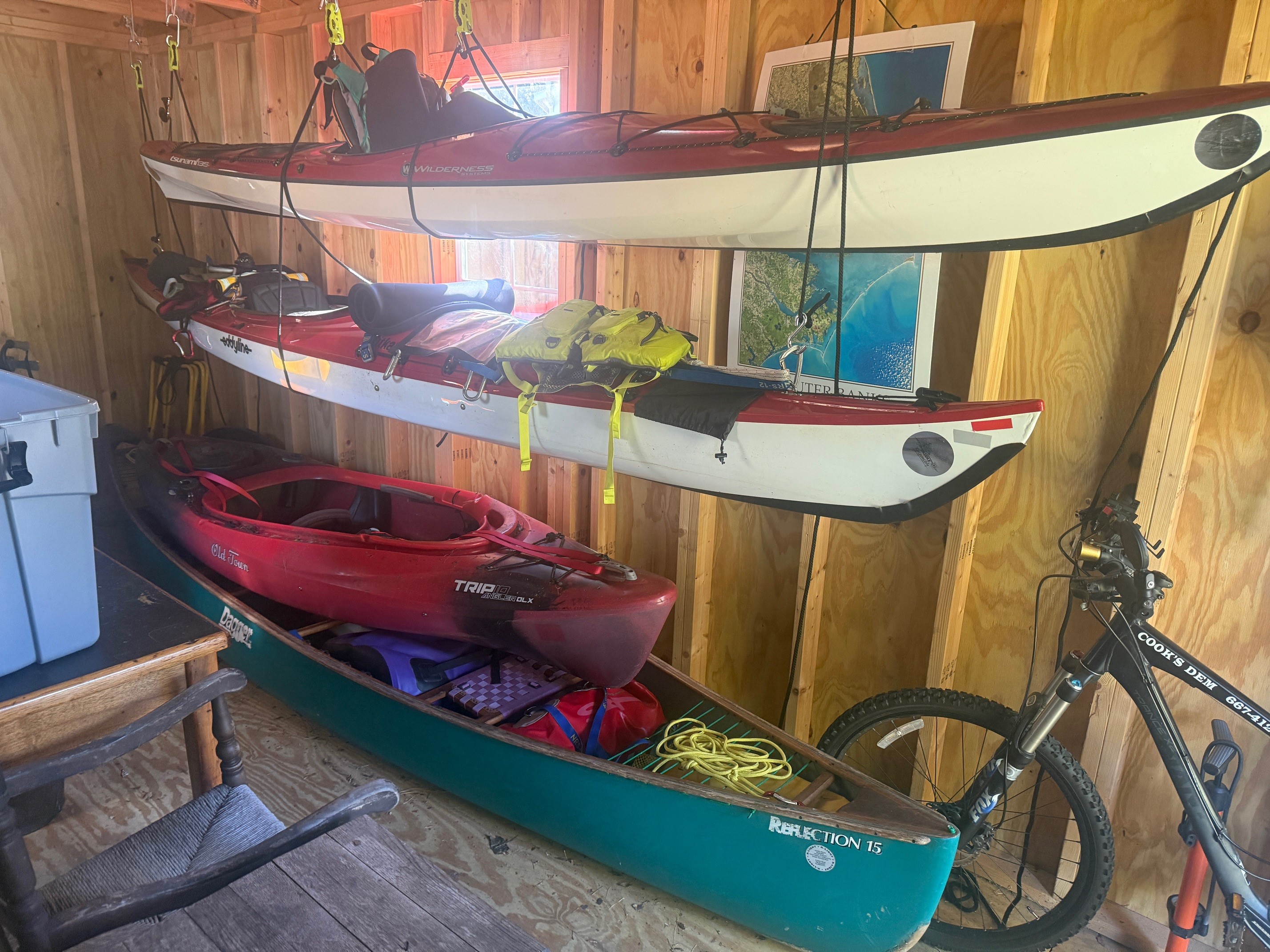 An outdoor sporting couple like Janet Smith and Bob Laney cannot have too many boats, bicycles or packs.