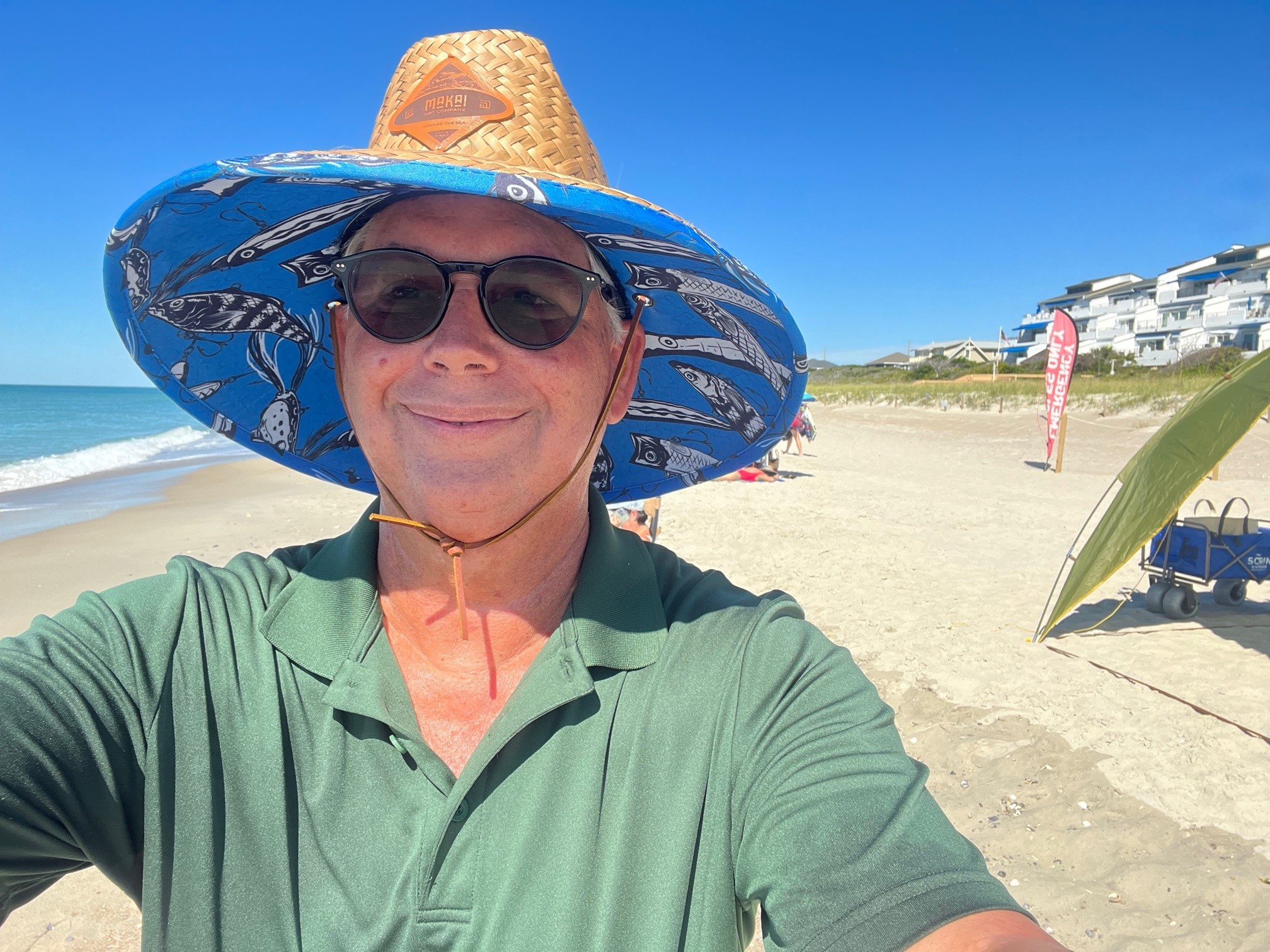 Ho, hum! Another day of beach life by retired Bob and Terri! Another day in paradise! On a pretty, sunny, warm day in mid-August, 2022, Terri and I went to Indian beach on Bogue Banks [called by the Chamber of Commerce types as Emerald Island]. Our last several trips to the beach have been hindered by blazing hot temperatures and high winds. Today was better, with less heat and wind.