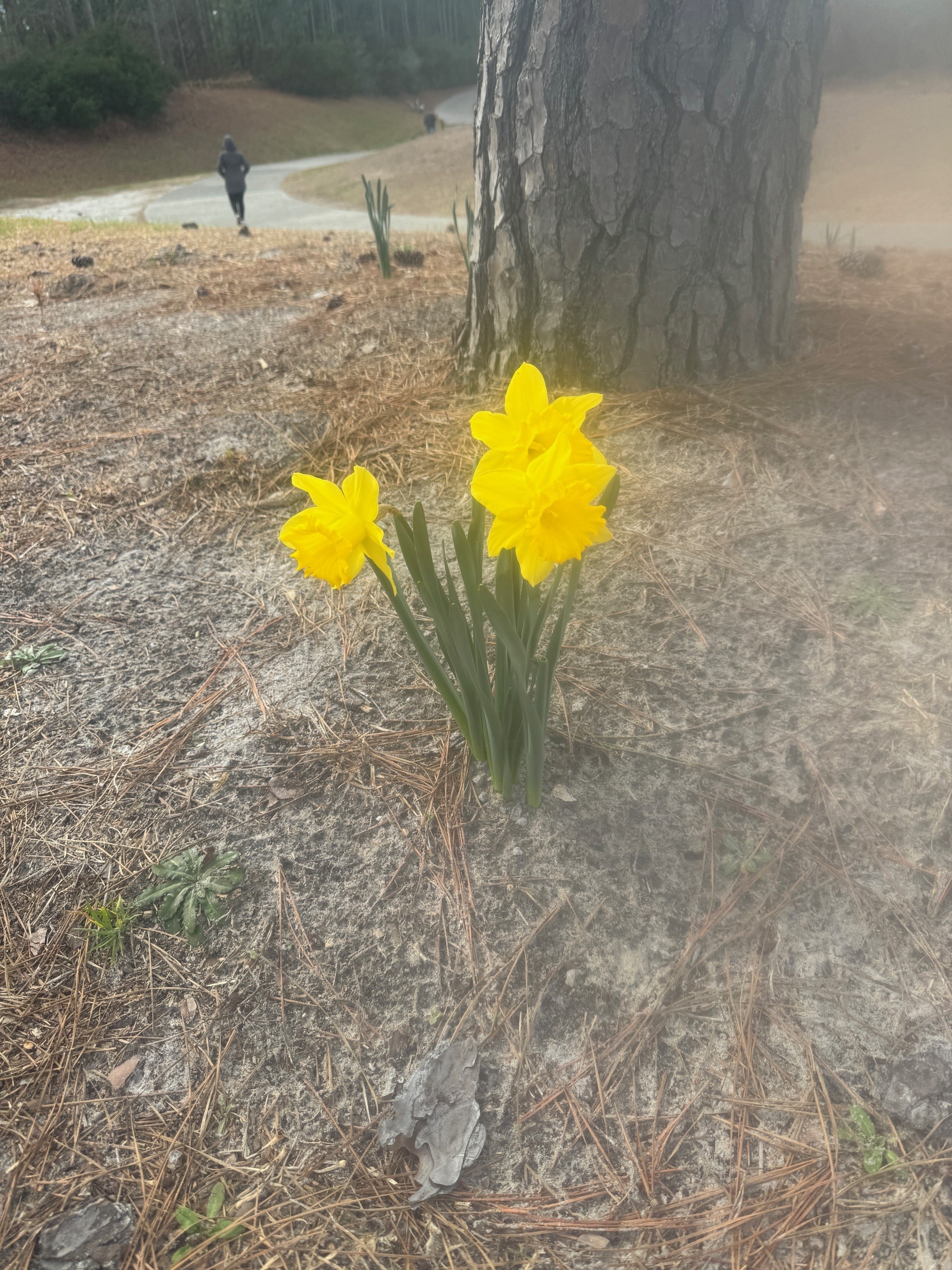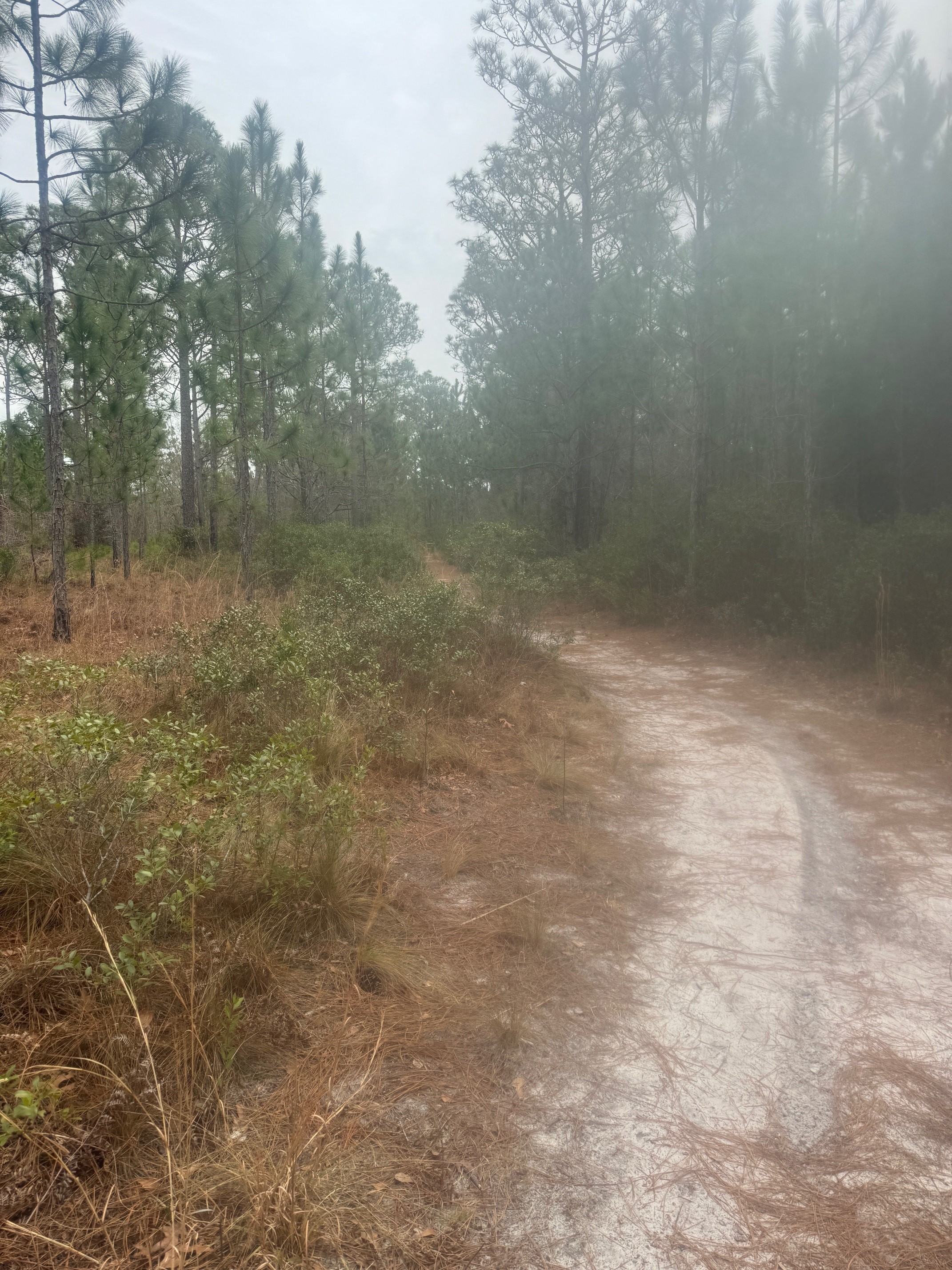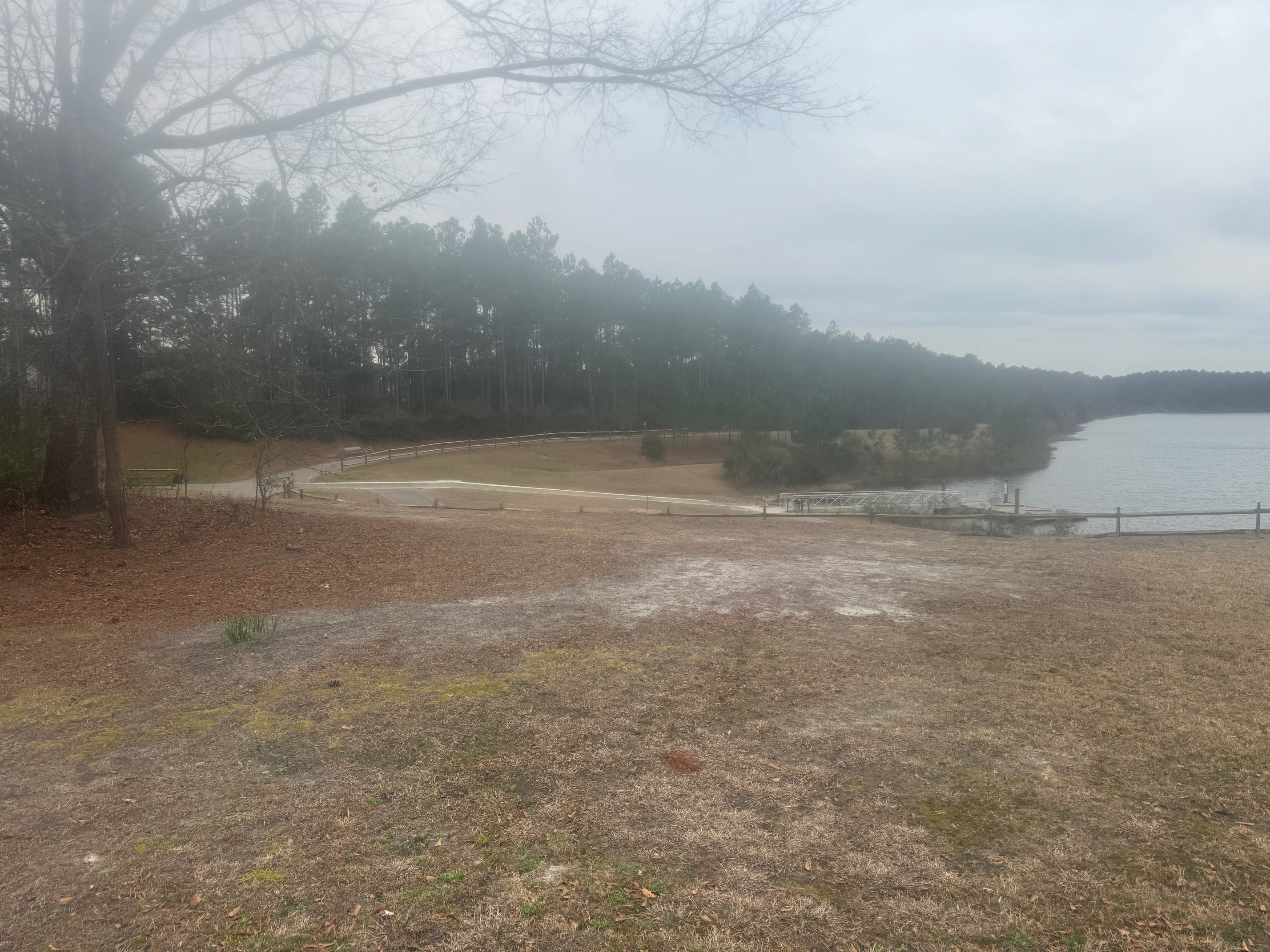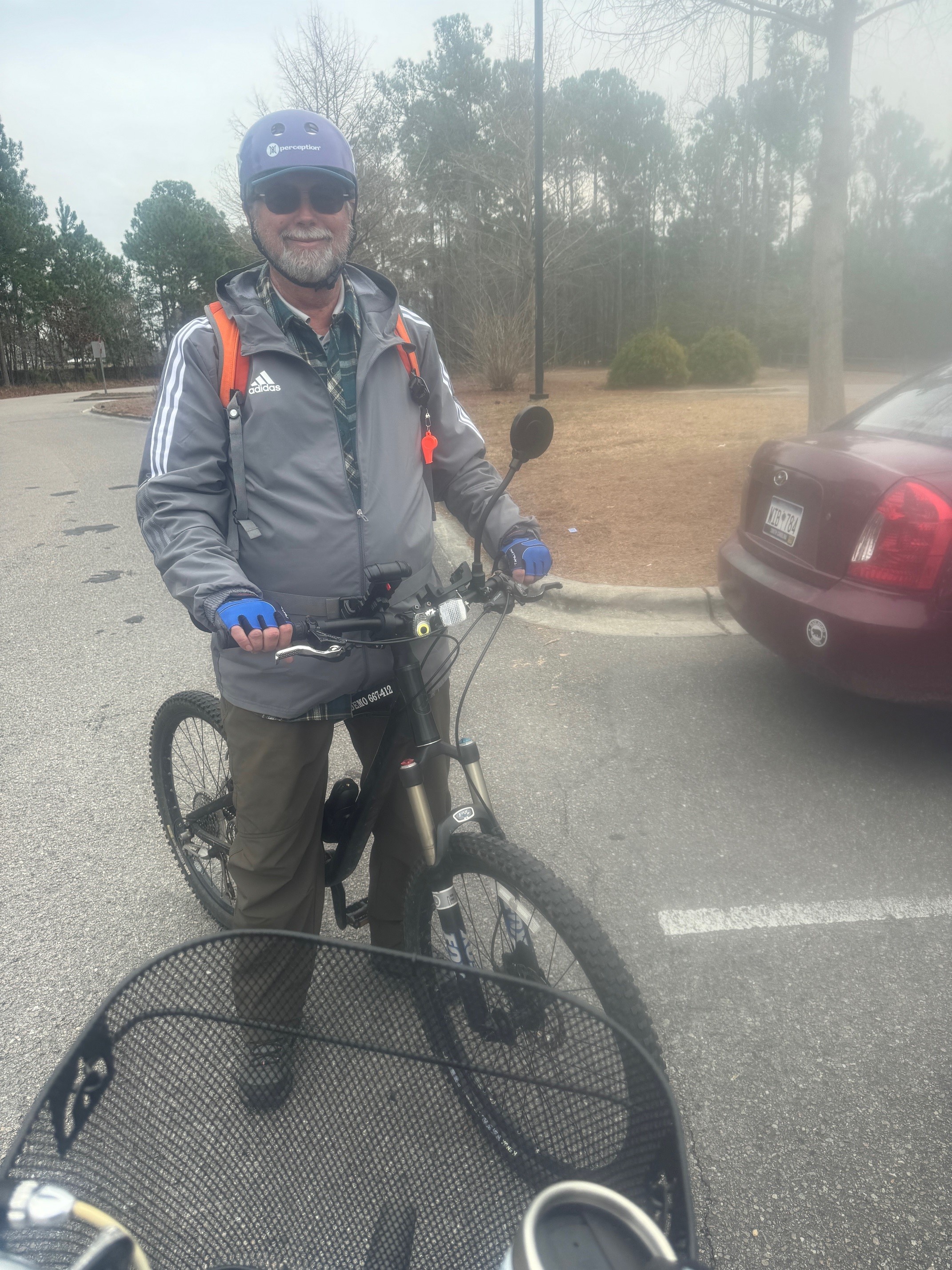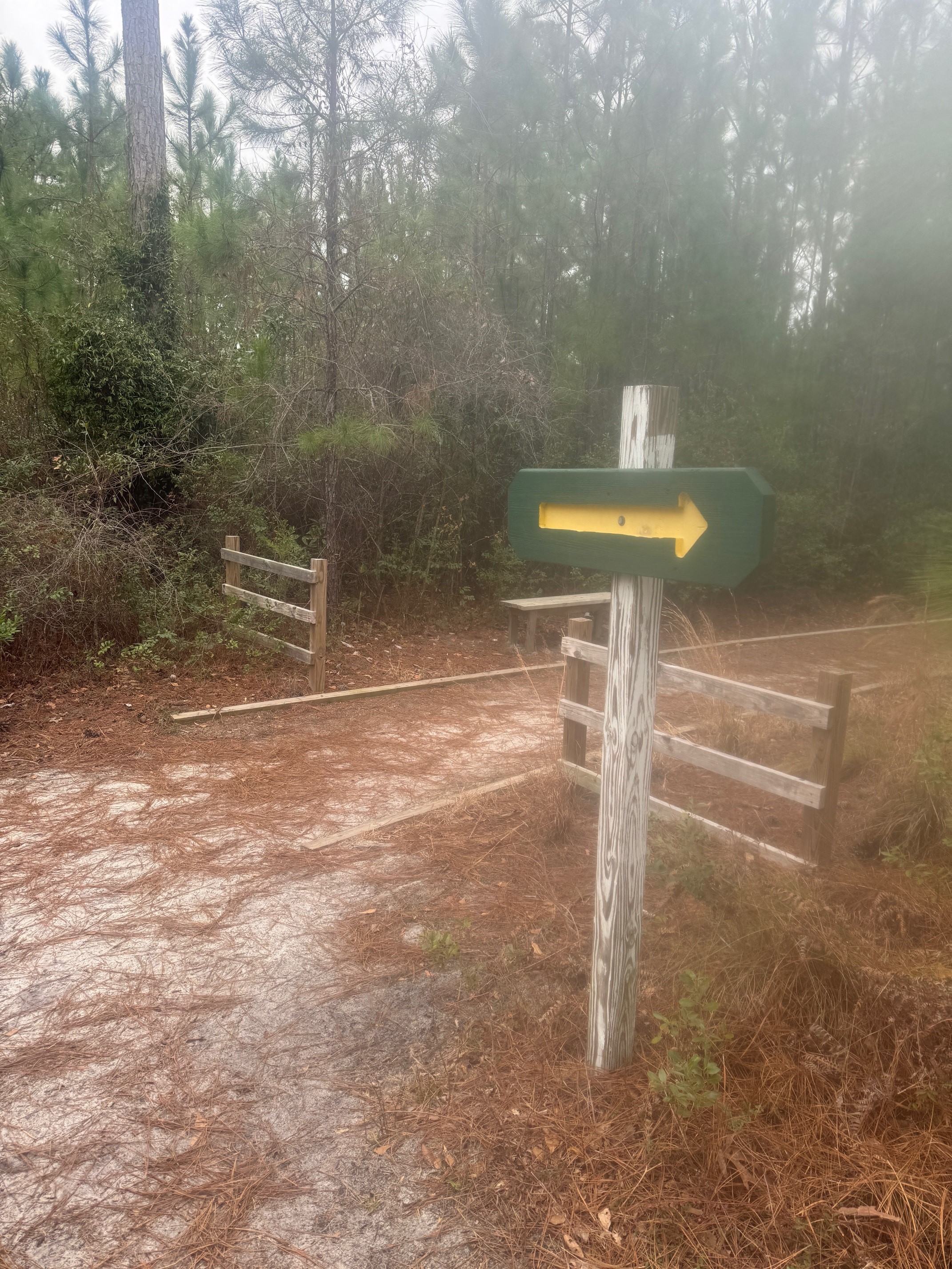 On the cloudy and moderately cool afternoon of February 17, Janet and I went to Smith Creek Park outside Wilmington, NC. We took our bicycles and her Golden Retriever, Gracie. There is a paved path for walking and biking surrounding the lake. Beyond the paved path are dirt trails which are mostly unmarked, winding through the woods. Janet had been there before, so she was our guide.
