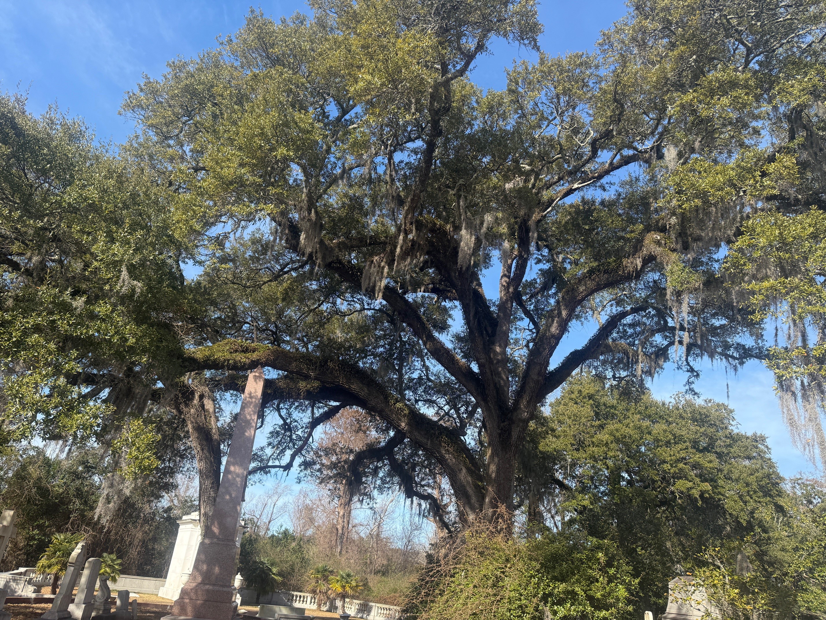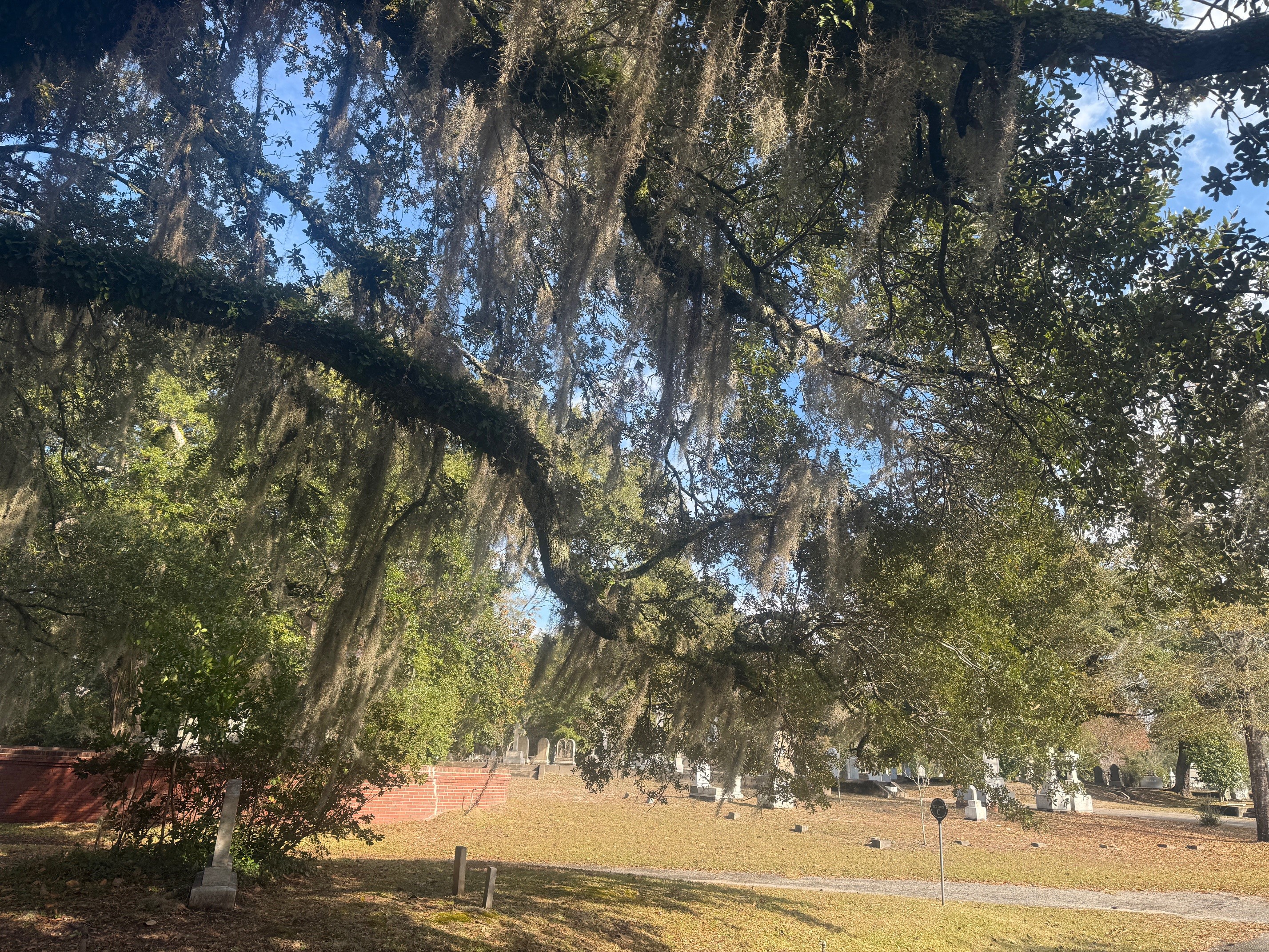 I was not able to get photos of our many wild animal encounters. We saw a beautiful, healthy adult red fox loping across the grave sites; flocks of ibises which are normally seen in salt water estuaries and not this far inland; fur on the ground evidencing a fight between a racoon and some other fierce animal; and the mostly chewed hind leg of a whitetail deer.